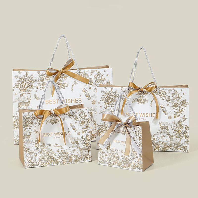 gold bowknot square paper handbag